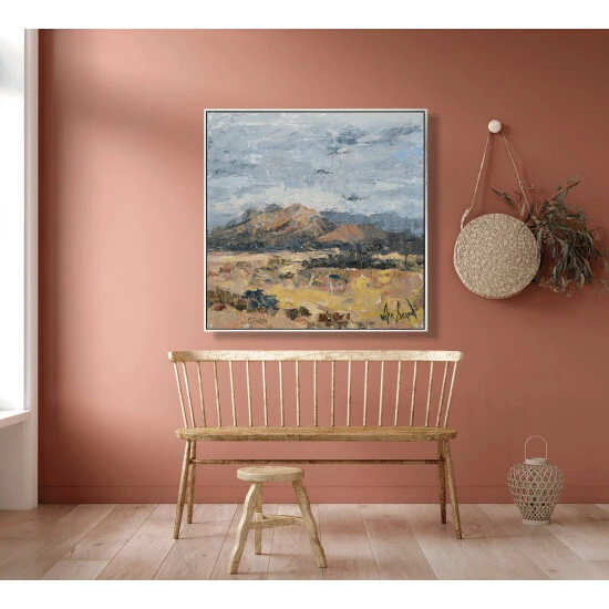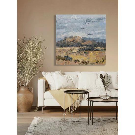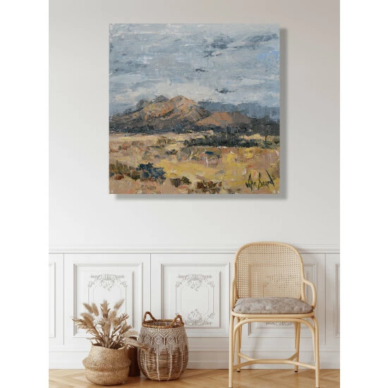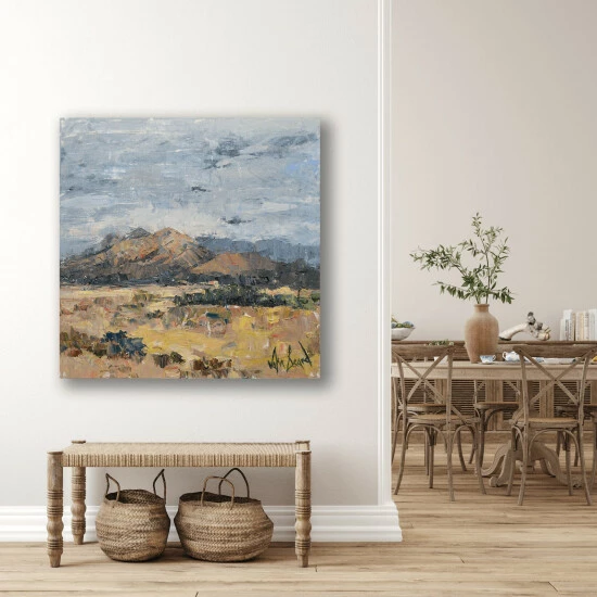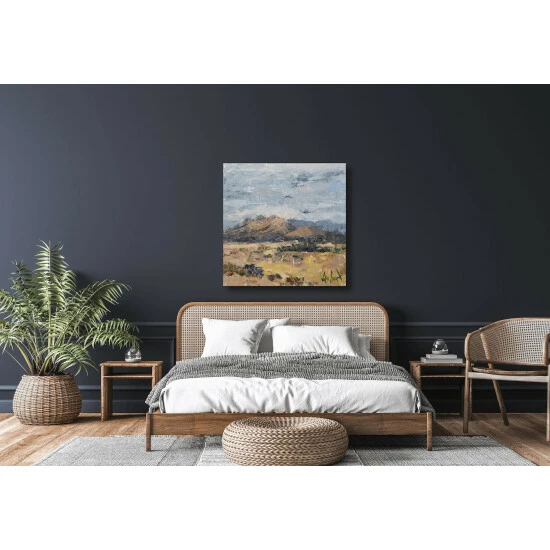 The warm colours and blue skies inspired by the desert in Sedona. You can feel the sun on your face just looking at A New Day Has Dawned.Artist enhancement: Johnny himself adds a little acrylic paint on the canvas to create heavy texture.Artist note: If I don’t paint for an extended period of time I become restless. John Beard