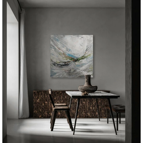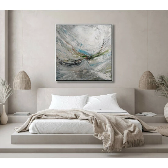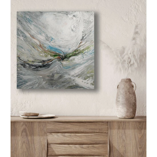 The whimsical brushstrokes and fluidity reflect all we cannot see. It reflects the air we are surrounded by and entangled with every passing moment.Artist Enhancement: Johnny himself adds a little acrylic paint on the canvas to create heavy texture.
