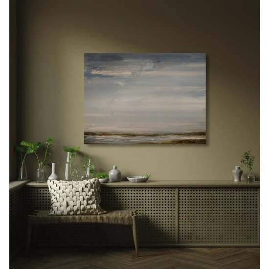 Soft brush strokes, calming color palette, minimalist use of lines. Breakers exemplifies all the components in a serene coastal scene.
