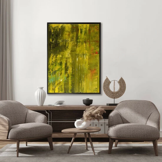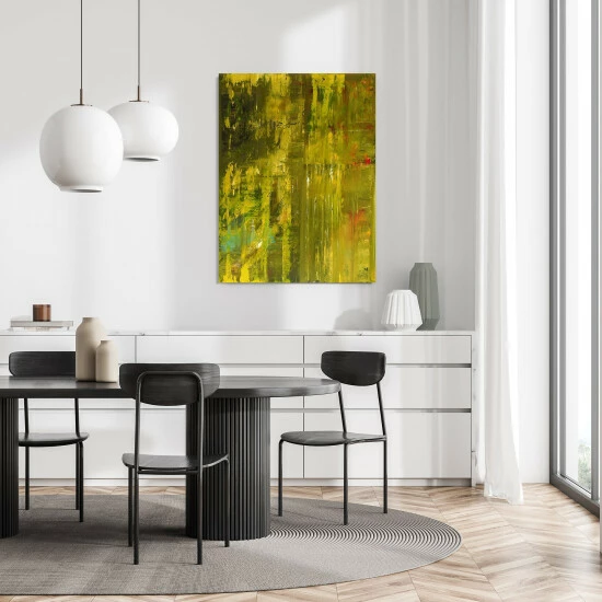 Vibrant and bold, John’s daring use of color creates a striking statement piece.Artist enhancement: Johnny himself adds a little acrylic paint on the canvas to create heavy texture.Artist note: I can still throw a football over a mountain. John Beard