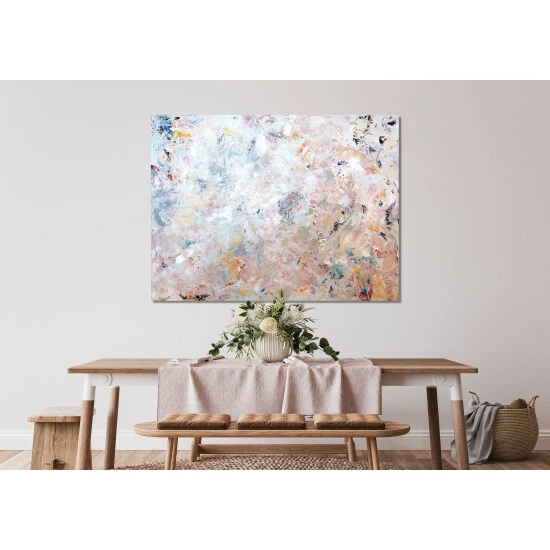 You’ll find something new each time you look at this piece, with its muted pastels and details therein. Can you guess how many candies are in the jar?Artist Enhancement: Johnny himself adds a little acrylic paint on the canvas to create heavy texture.