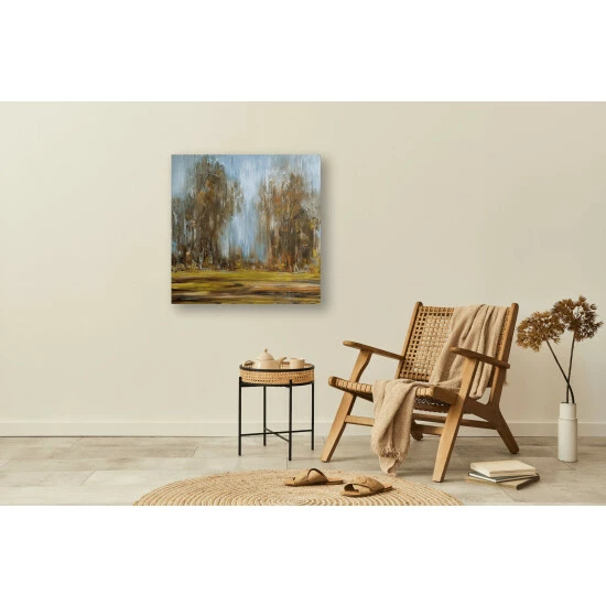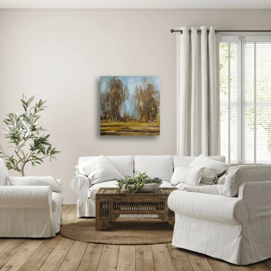 Soft edges and earthy tones melt together to create this serene landscape piece.Artist enhancement: johnny himself adds a little acrylic paint on the canvas to create heavy texture.Artist note: My favorite time to paint is late at night, sometimes into the morning hours. John Beard