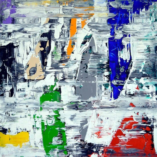 Artist enhancement: Johnny himself adds a little acrylic paint on the canvas to create heavy texture.