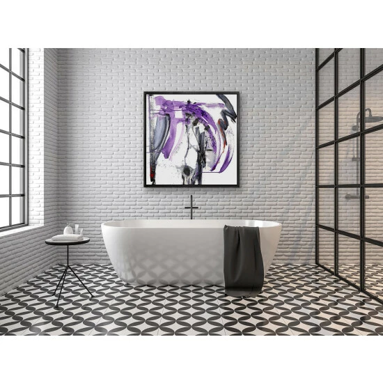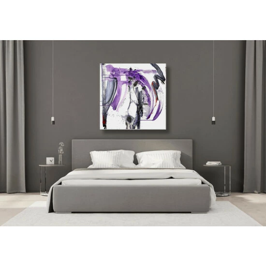 Active, electric strokes of purple and black dance across the stark white background. Purple & Black II is part of John Beard’s Purple & Black Series.Artist Enhancement: Johnny himself adds a little acrylic paint on the canvas to create heavy texture.