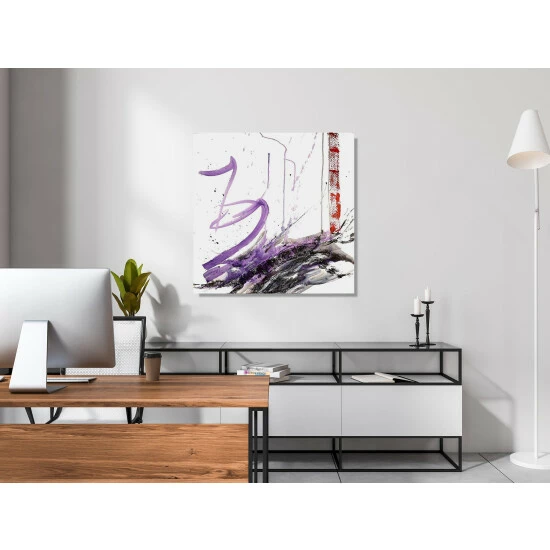 Active, electric strokes of purple and black dance across the stark white background. Purple & Black III is part of John Beard’s Purple & Black Series.Artist Enhancement: Johnny himself adds a little acrylic paint on the canvas to create heavy texture.