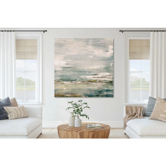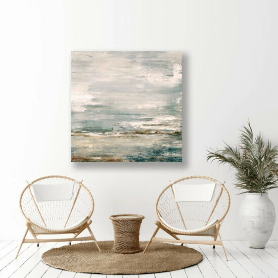 A JBC favorite inspired by the views John grew up with in the Florida Keys, Sea and Sky uses soft, cool tones that emit a serene energy. Artist Enhancement: Johnny himself adds a little acrylic paint on the canvas to create heavy texture.