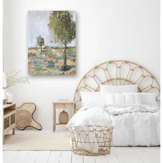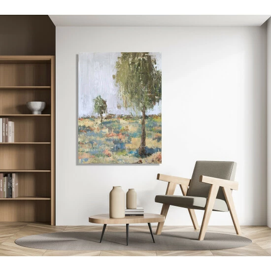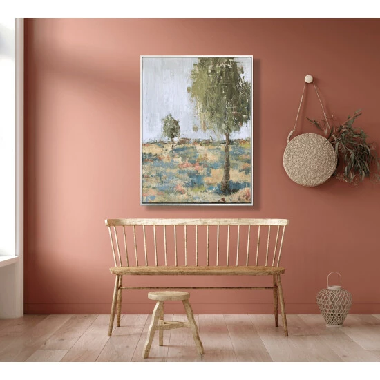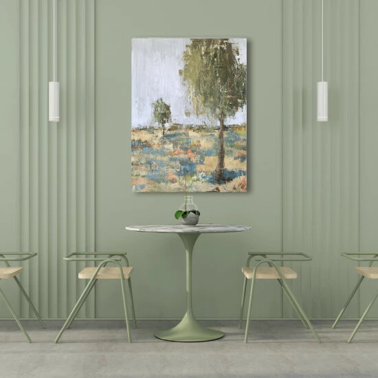 Soft pastel hues and edgy, textural brushstrokes are balanced in Spring Day II. Spring Day II is part of John Beard’s Spring Day Series. Artist Enhancement: Johnny himself adds a little acrylic paint on the canvas to create heavy texture.
