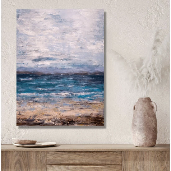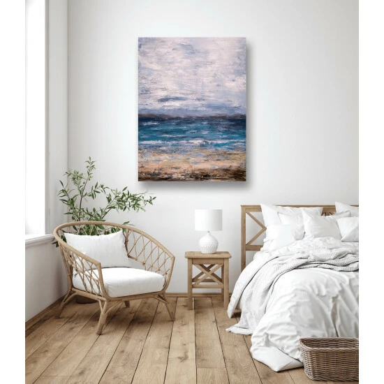 This beautifully composed abstraction of the sea will draw you in with its deep, captivating hues of blue. Artist Enhancement: Johnny himself adds a little acrylic paint on the canvas to create heavy texture.
