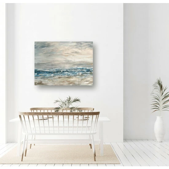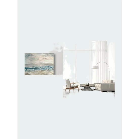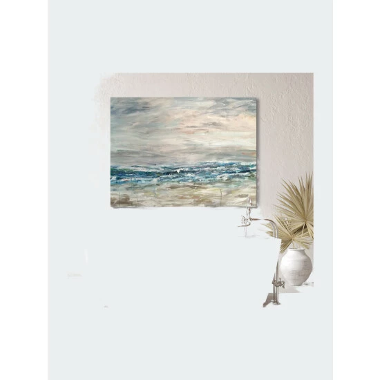 A serene, minimal abstract piece of a horizon line through the promising surf that lays off the coast of Southern California. Artist Enhancement: Johnny himself adds a little acrylic paint on the canvas to create heavy texture.