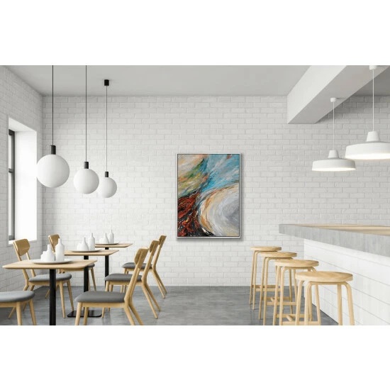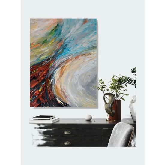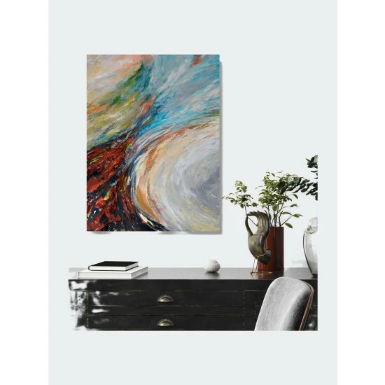 A whirlpool of color, Undercurrent acts as a vessel of mingling color and brushstrokes. Artist Enhancement: Johnny himself adds a little acrylic paint on the canvas to create heavy texture.