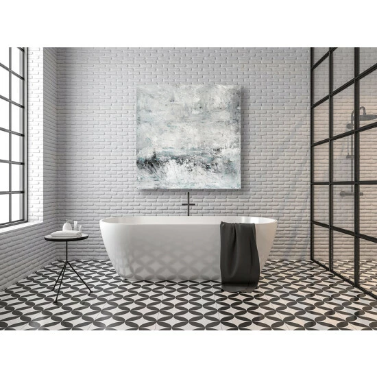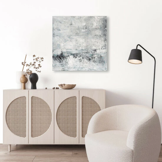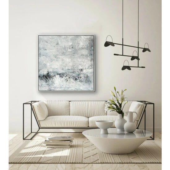 Crashing strokes of whites and grays create a chaotic calmness that everyone can relate to.Artist Enhancement: Johnny himself adds a little acrylic paint on the canvas to create heavy texture.