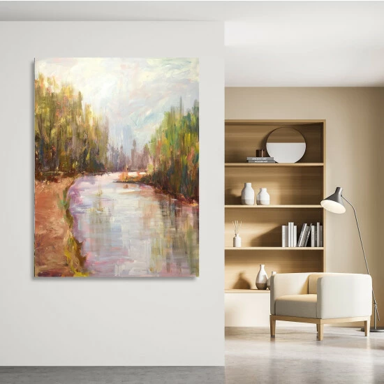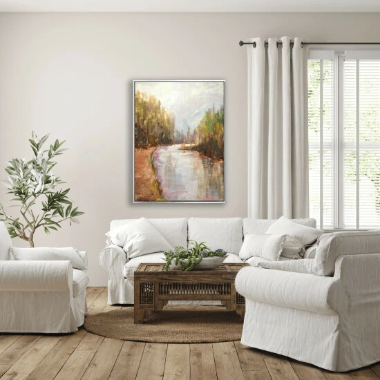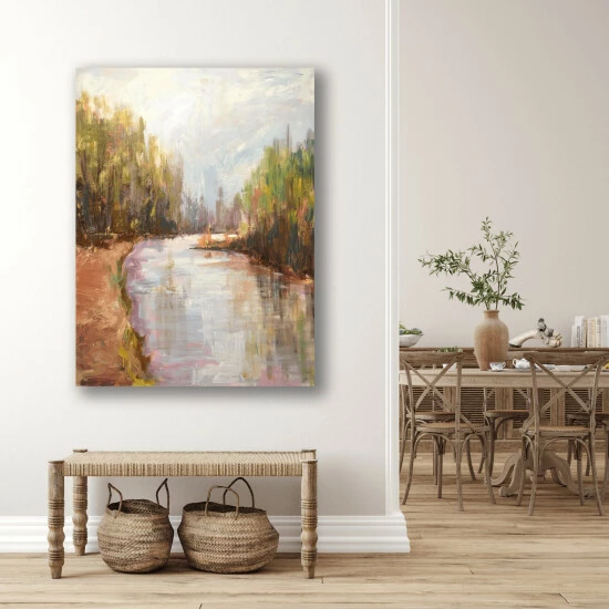 A perspective piece taking you through a still, winding river, Wild Tranquility uses warm tones that act as a blanket of sun and warmth over the landscape.Artist Enhancement: Johnny himself adds a little acrylic paint on the canvas to create heavy texture.
